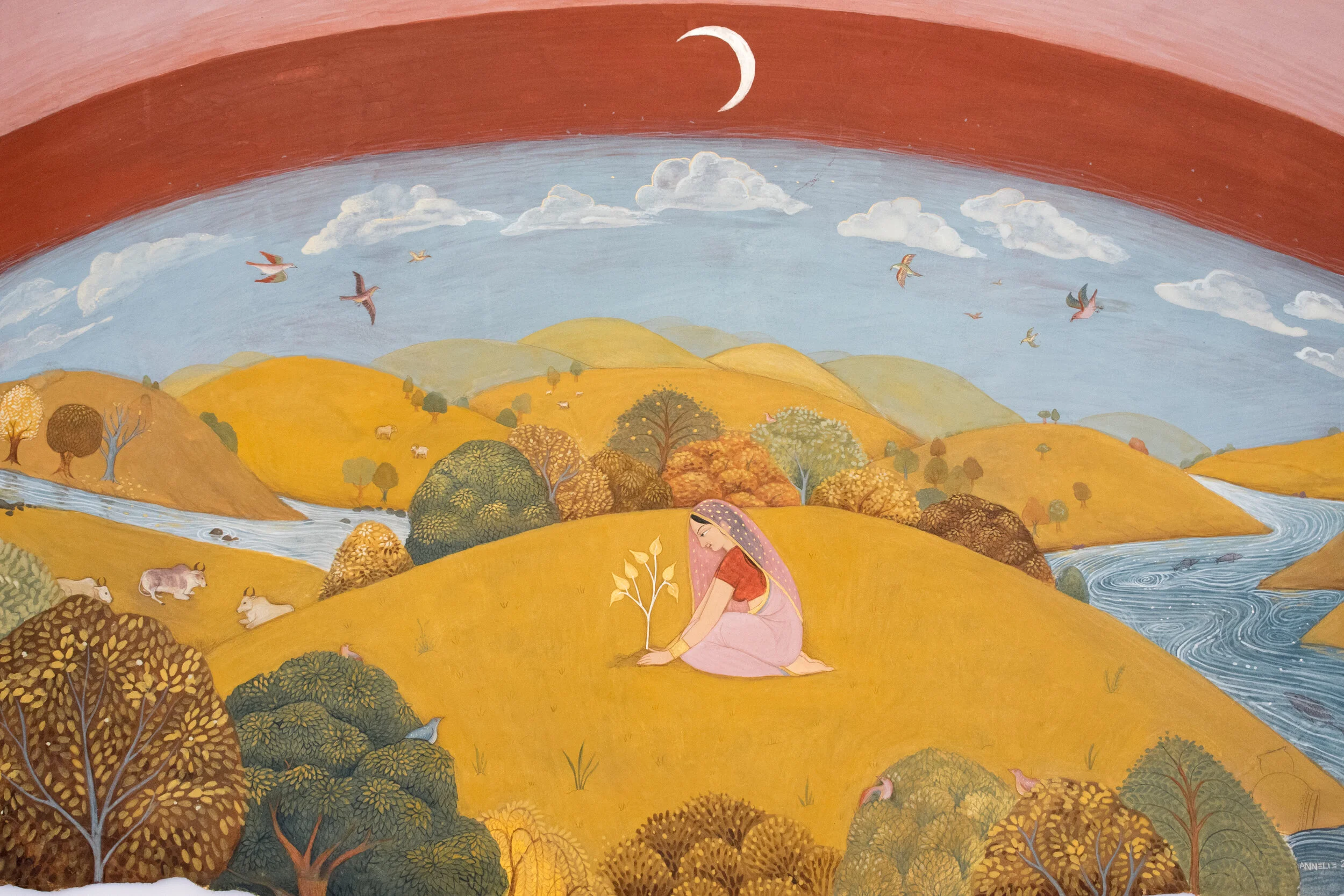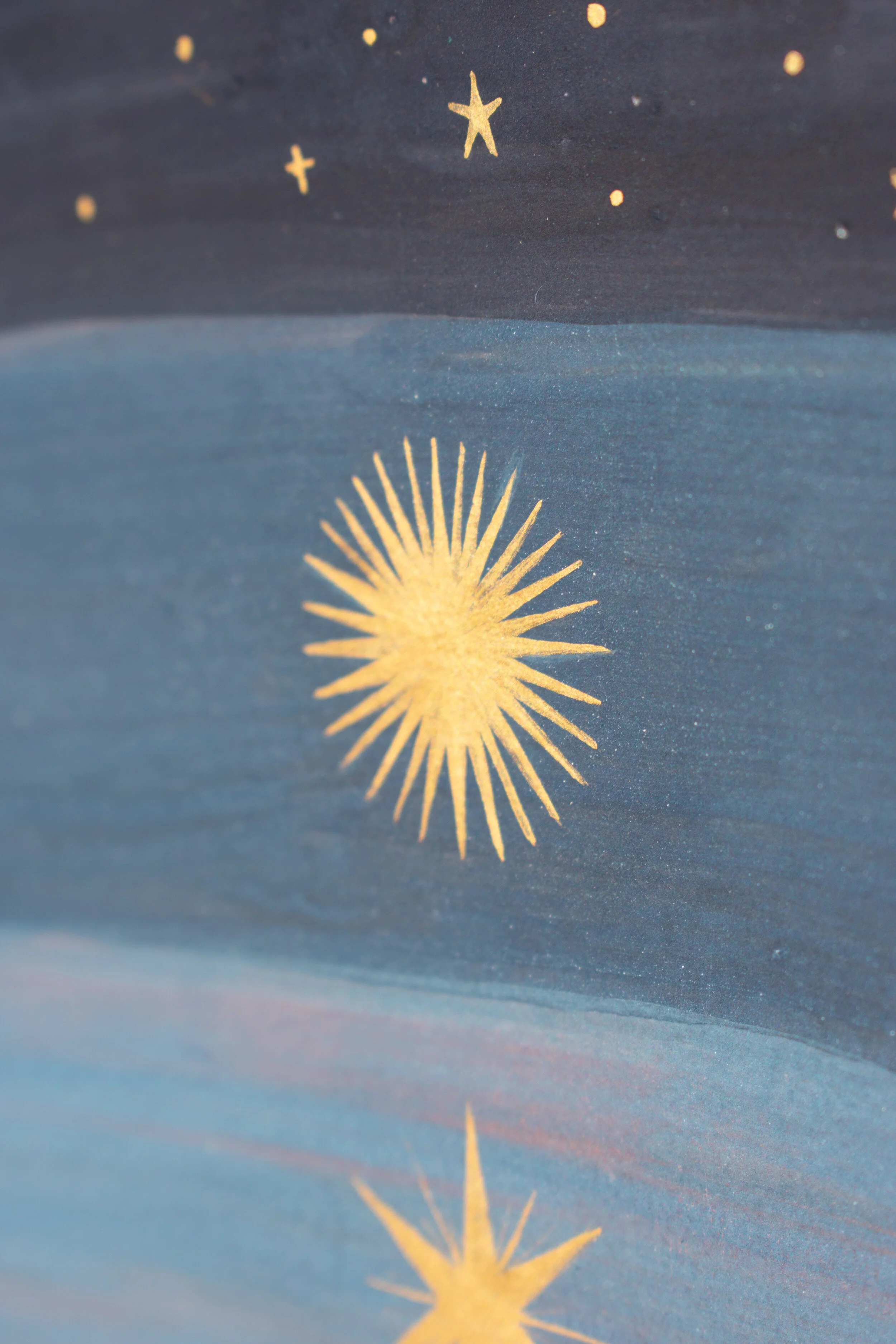 Natural and hand-foraged pigments, 23.5ct gold & 9.6ct white gold on recycled hemp paper